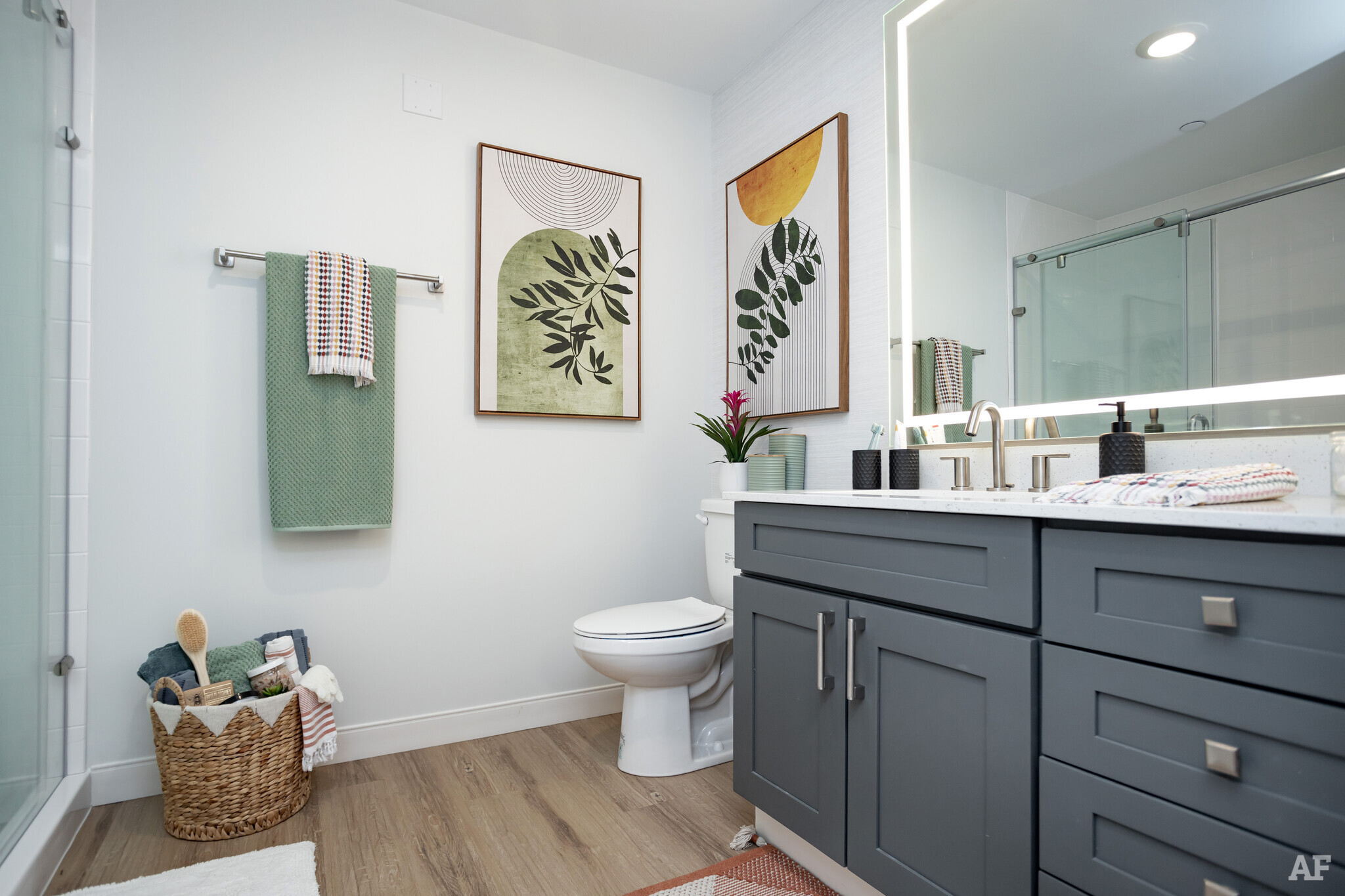 The bathroom is unique and fully fitted to a high standard. There is ample storage space throughout the whole apartment.