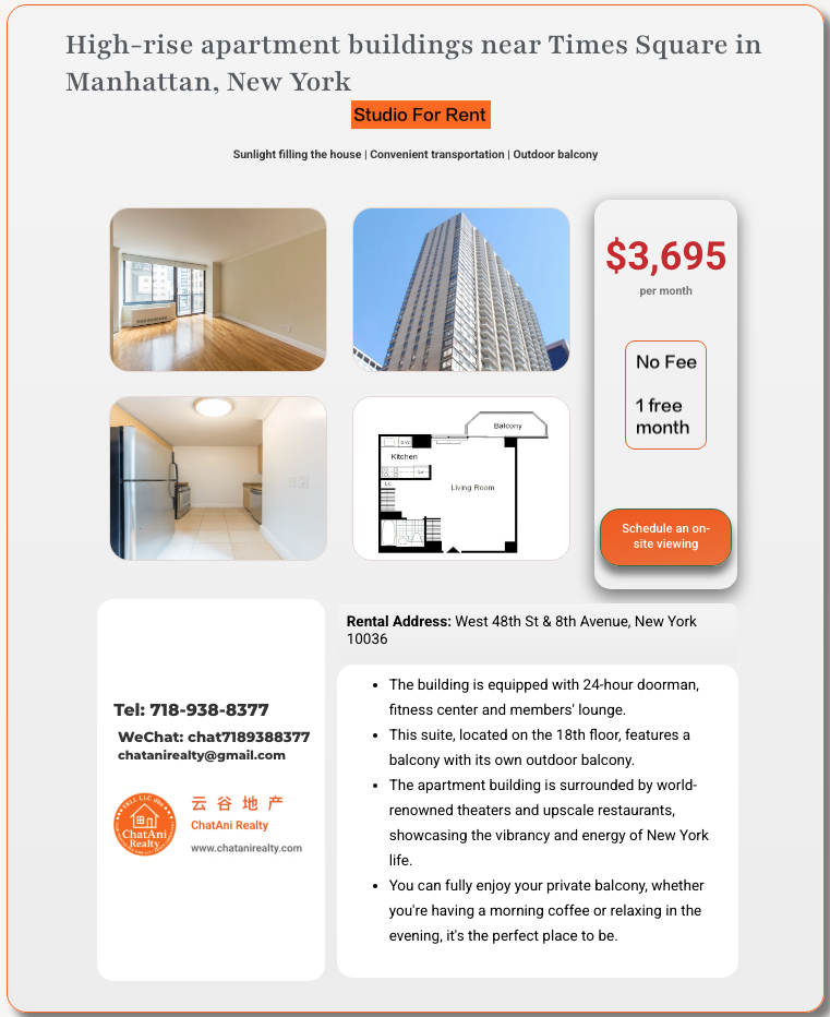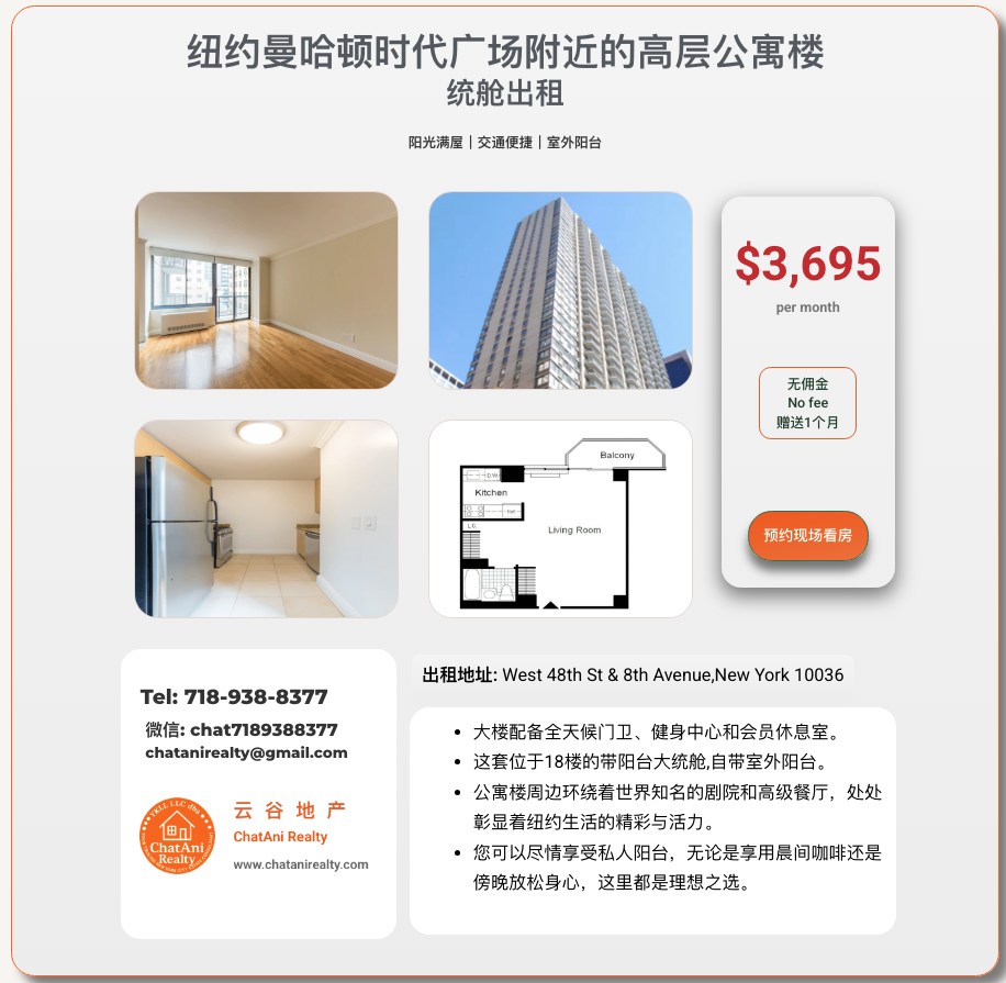 纽约曼哈顿时代广场附近的高层豪华公寓楼3695