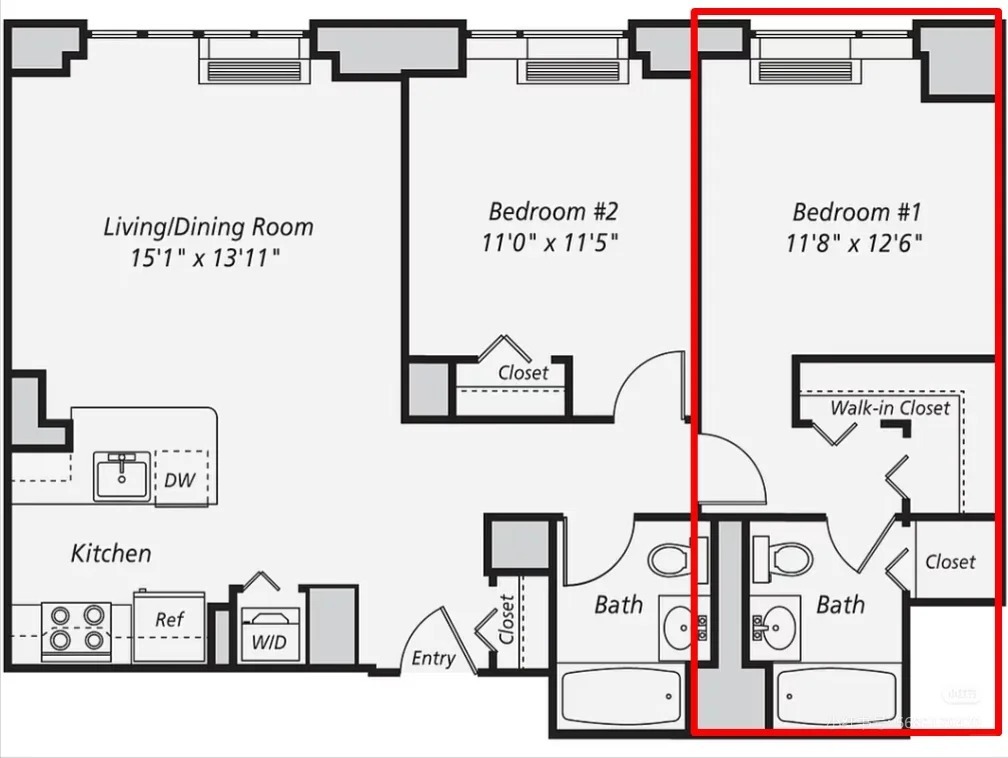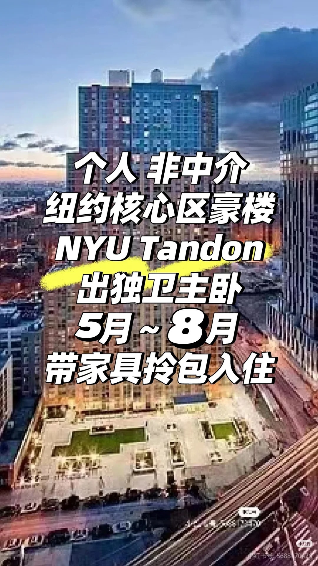 纽约布鲁克林城区AVA Fort Greene大楼主卧 暑假转租 带独卫家具